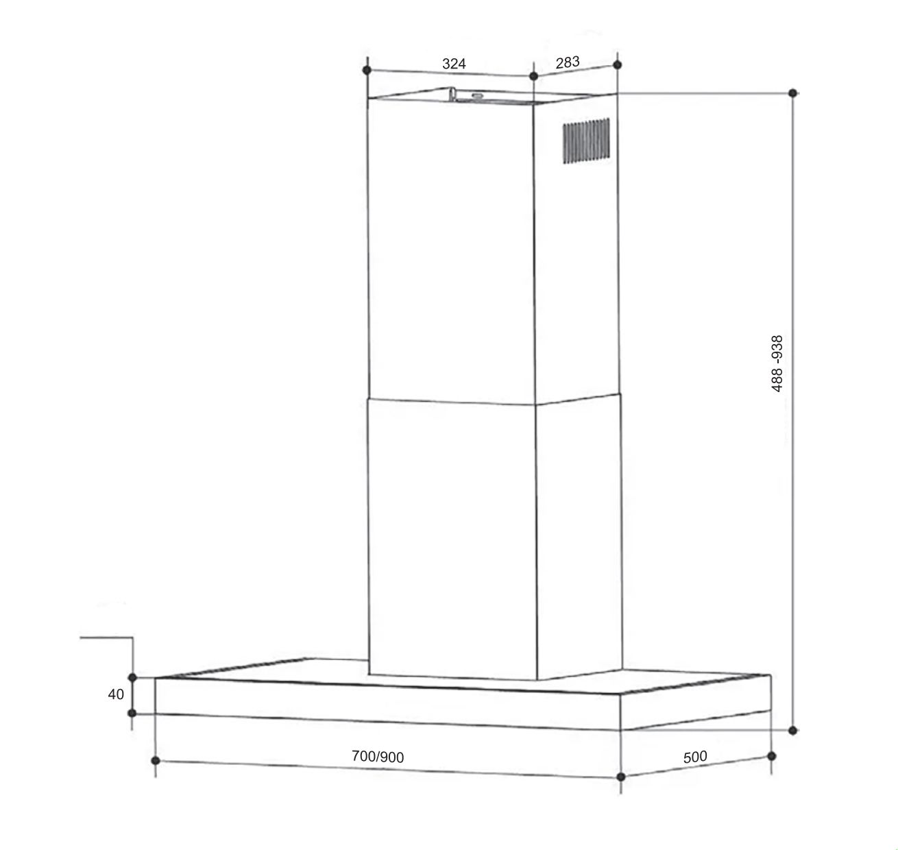 - Kích thước (D 700 x R 40 X C 500)mm