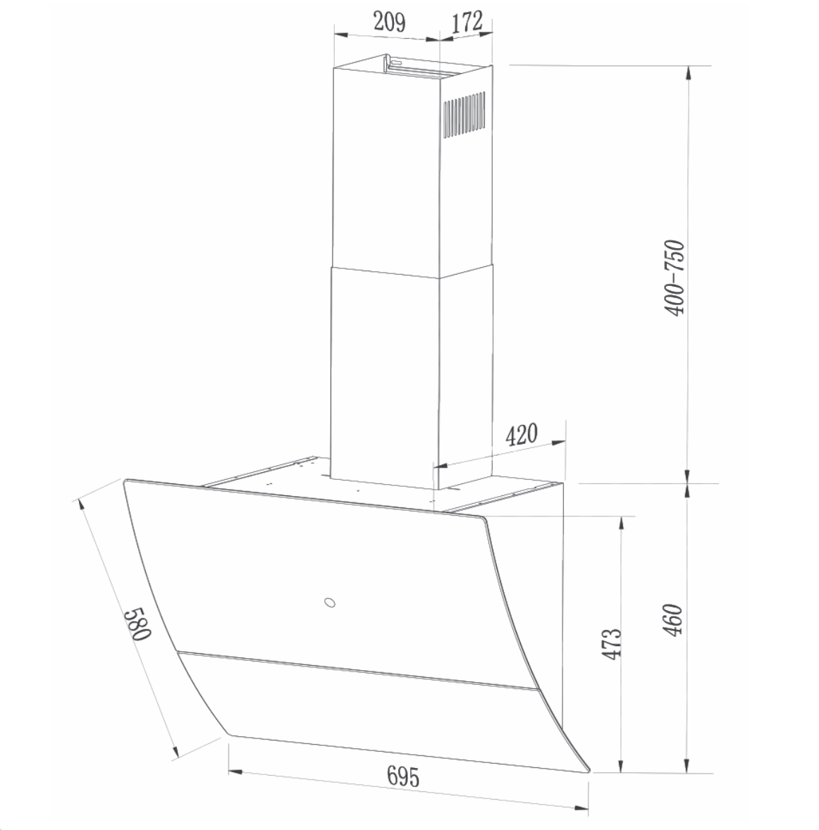 - Kích thước (D 695 x R 420 X C 473)mm