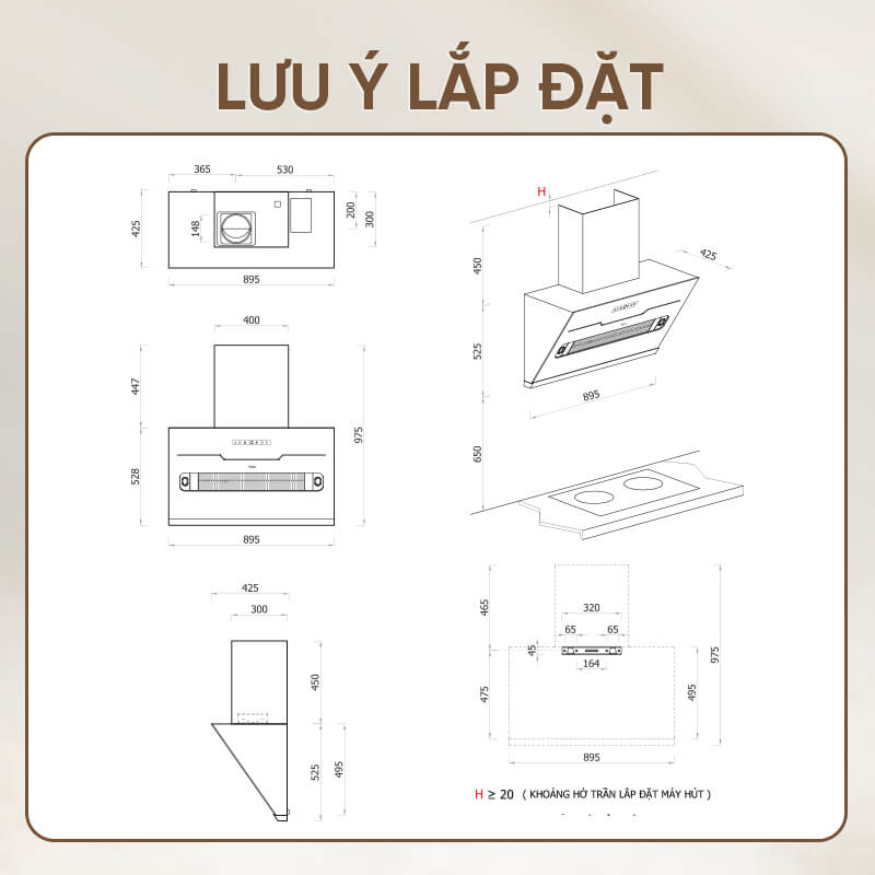 | Lưu ý lắp đặt | Lắp độc lập – âm tủ Đi đường ống thông gió: Phi 140mm – 160mm (Ống nhựa PVC) Đi loại dây chịu tải 2.5 |